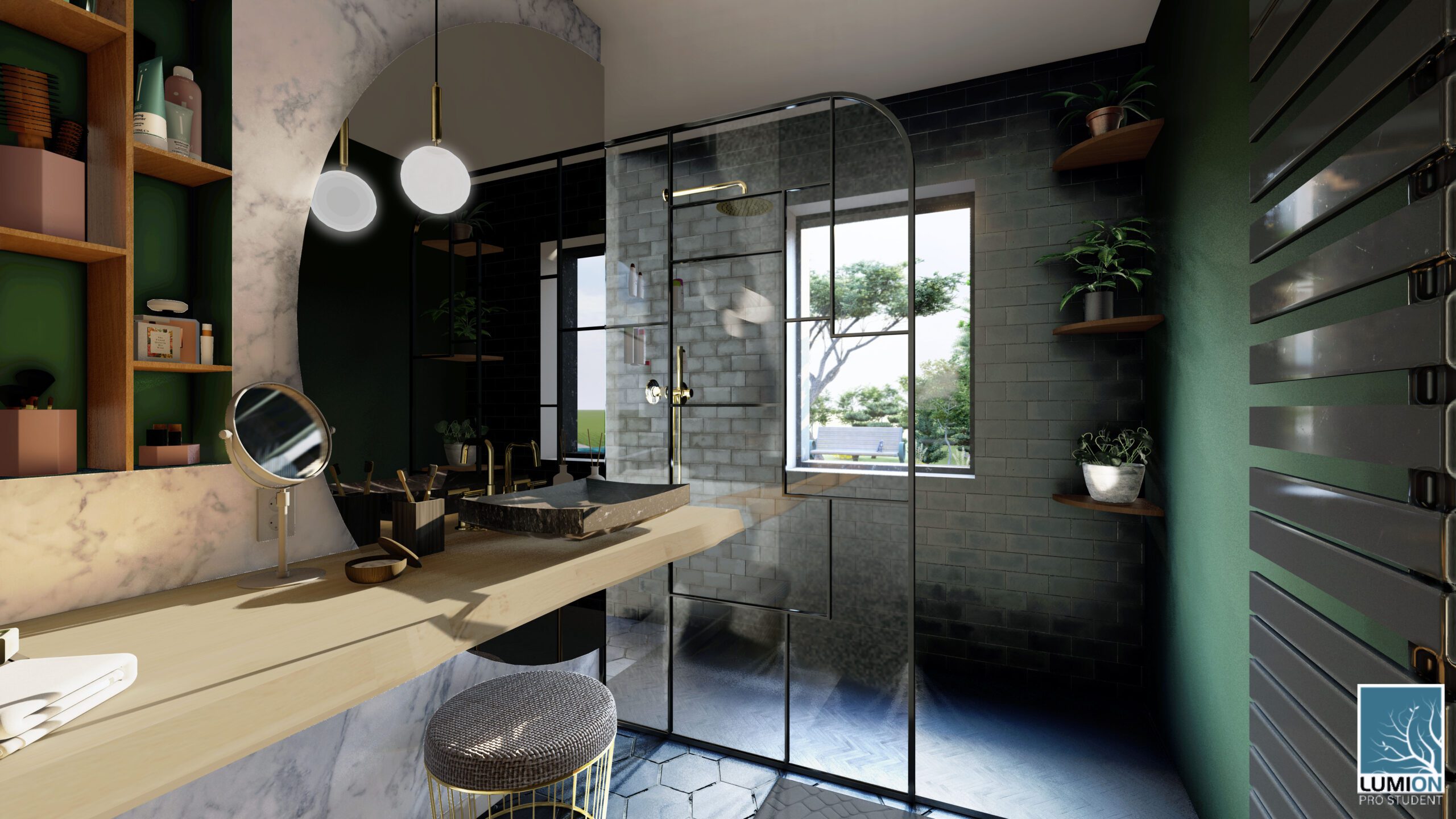 Salle de bainJanvier 2023 Modélisation d’une salle de bain sur base de plan. Modélisation : Sketchup & LumionTexturing/Rendu : Lumion
